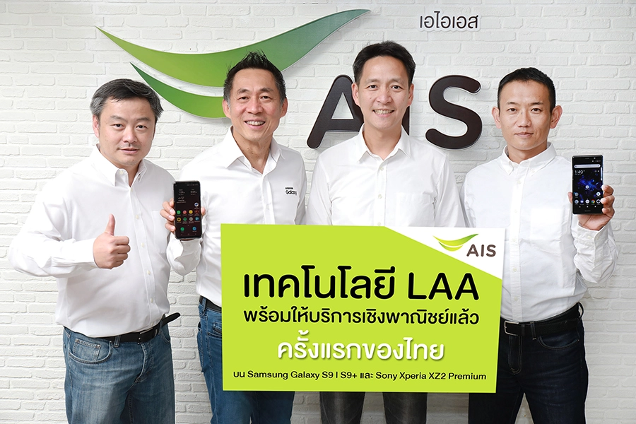 AIS ประกาศความร่วมมือ SAMSUNG และ SONY พัฒนาสมาร์ทโฟนให้รองรับเทคโนโลยี LAA บนเครือข่าย 4.5G ได้สำเร็จเป็นรายแรกของไทยพร้อมให้บริการเชิงพาณิชย์ กับผู้ใช้แพ็กเกจ AIS 4G ตอกย้ำศักยภาพผู้นำนวัตกรรมเครือข่ายดิจิทัลอันดับหนึ่งของประเทศ ที่สร้างมาตรฐานใหม่ให้กับอุตสาหกรรมโทรคมนาคมของไทย ยกระดับความแข็งแกร่งทางด้านเทคโนโลยีให้กับประเทศ