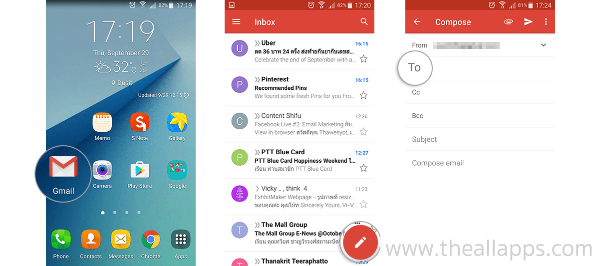 แตะที่ไอค่อนปากกา (ในวงกลมสีแดง) เพื่อเริ่มทำการส่งอีเมล