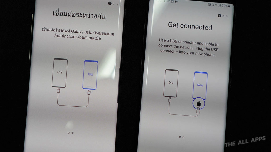 ในเครื่องเก่า จำเป็นต้องติดตั้งแอพ Smart Switch ก่อน ซึ่งหาดาวน์โหลดได้จาก Google Play Store ส่วนใน Note10 และ Note10+ นั้นจะมีแอพพลิเคชั่นนี้ติดตั้งไว้อยู่แล้ว