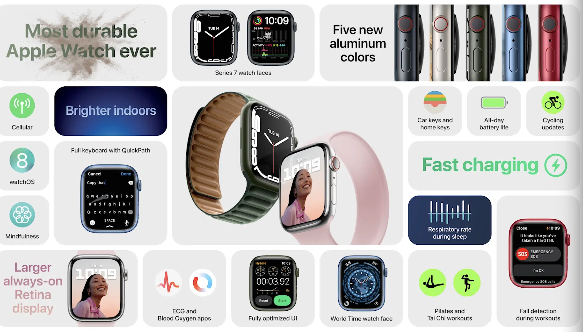 เปิดตัวอย่างเป็นทางการเรียบร้อยแล้วสำหรับสมาร์ทวอทช์รุ่นใหม่ Apple Watch Series 7 ที่มีหน้าจอใหญ่ขึ้น, ขอบขอโค้งขึ้น และทนทานมากขึ้นกว่าเดิม