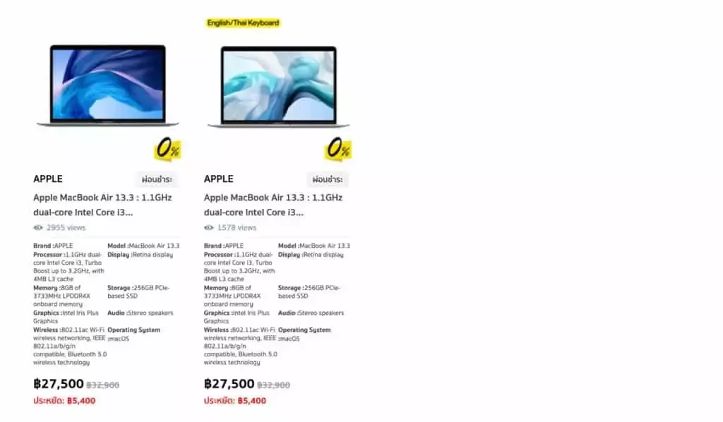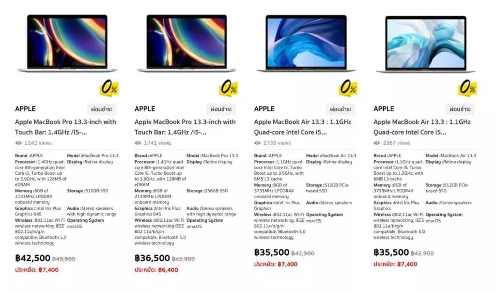 สำหรับ MacBook Air และ MacBook Pro ที่นำมาจัดโปรโมชั่นลดราคานี้ จะเป็นโมเดลปี 2020 ชิป Intel ไม่ได้เป็นโมเดลใหม่ล่าสุดที่เป็นชิป Apple M1 สำหรับใครที่กำลังมองหา MacBook ไว้ใช้งานสักเครื่อง ก็ลองคลิกเข้าไปดูได้ที่เว็บไซต์ BNN.IN.TH โดยลด 7,400 บาท สำหรับ MacBook Air และลด 6,400 บาท สำหรับ MacBook Pro