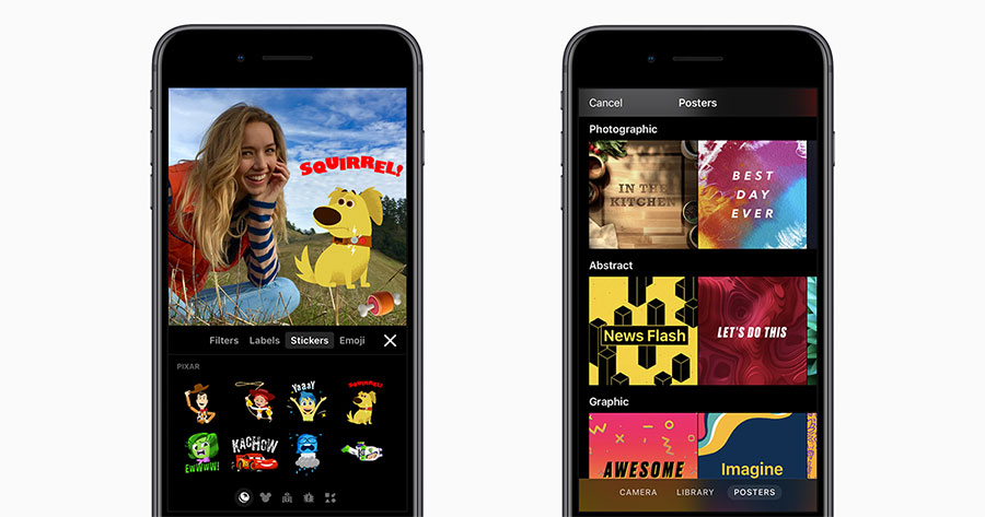 ยิ่งกว่านั้น ผู้ใช้ยังสามารถบ่งบอกความเป็นตัวเองในวิดีโอได้มากขึ้นด้วยสติ๊กเกอร์ใหม่ที่ออกแบบโดย Apple ซึ่งมีให้เลือกถึง 16 แบบ และเสียงประกอบใหม่ๆ ที่ไม่มีค่าลิขสิทธิ์จากศิลปินอินดี้อีก 21 แทร็ค และแทร็คที่เพิ่มมาใหม่นี้ยังปรับตามความยาวของวิดีโอโดยอัตโนมัติเช่นเดียวกับเสียงประกอบอื่นๆ ในแอปพลิเคชันอีกด้วย