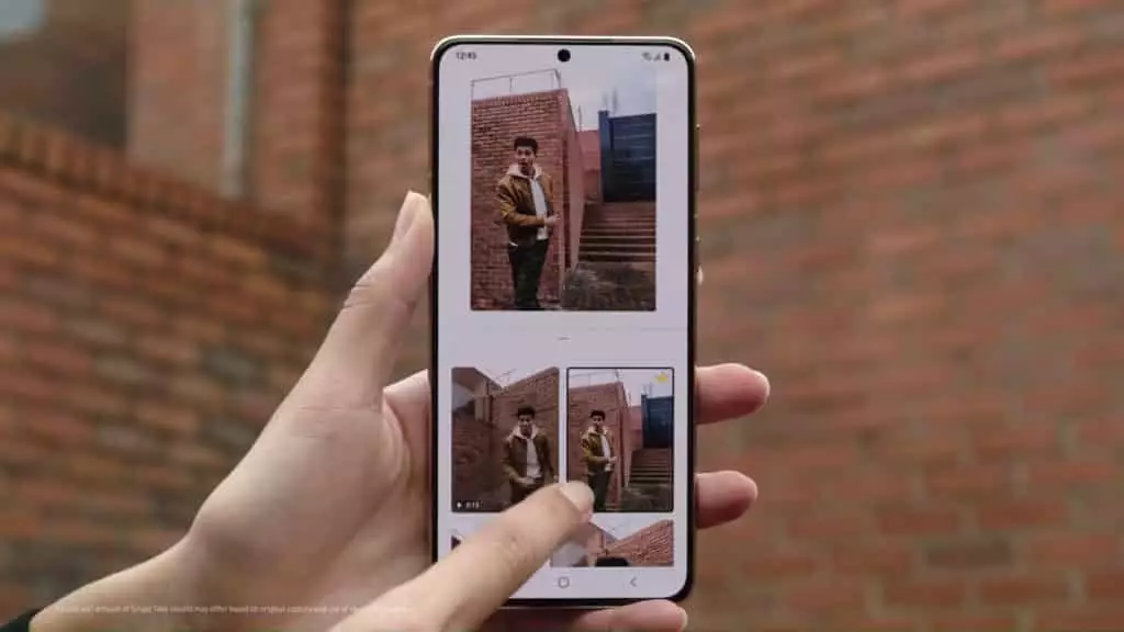 Single Take ใน S21 Series 5G ด้วยความสามารถของ AI ที่ดีขึ้นกว่าเดิมถึง 5 เท่า ทำให้การกดถ่ายวิดีโอเพียงครั้งเดียว จะทำให้ได้ภาพและวิดีโอมากสูงสุดถึง 14 แบบ โดยมีทั้งภาพสี ภาพขาวดี รวมถึงคลิปวิดีโอที่ใส่เพลงประกอบมาให้เรียบร้อยแล้ว โดยใน Single Take เวอร์ชั่นใหม่นี้ ยังมาพร้อมฟีเจอร์ใหม่ อย่าง Dynamic Slow-Mo ที่จะเลือกช็อตไฮไลท์ พร้อมทำให้ภาพนั้นช้าลงโดยอัตโนมัติ โดยไม่ต้องตัดต่อเพิ่มอีกต่อไป รวมถึง ‘Filter videos’ ที่นำสไตล์การถ่ายทำแบบ Hyper lapse มาใช้เมื่อคุณถ่ายภาพวิวทิวทัศน์ เพื่อให้ดูเหมือนเป็นฟุตเทจที่ถ่ายจากช่วงเวลาเช้าจรดเย็น 24 ชั่วโมง
