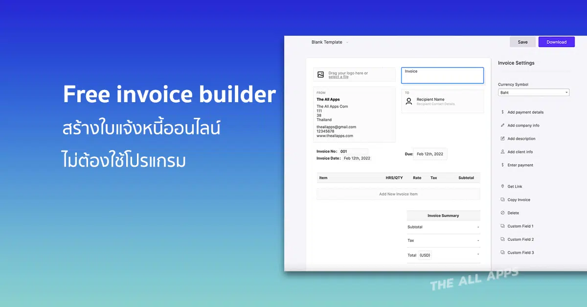 แนะนำเว็บไซต์ Free invoice builder สร้างใบแจ้งหนี้ออนไลน์ ไม่ต้องใช้โปรแกรม