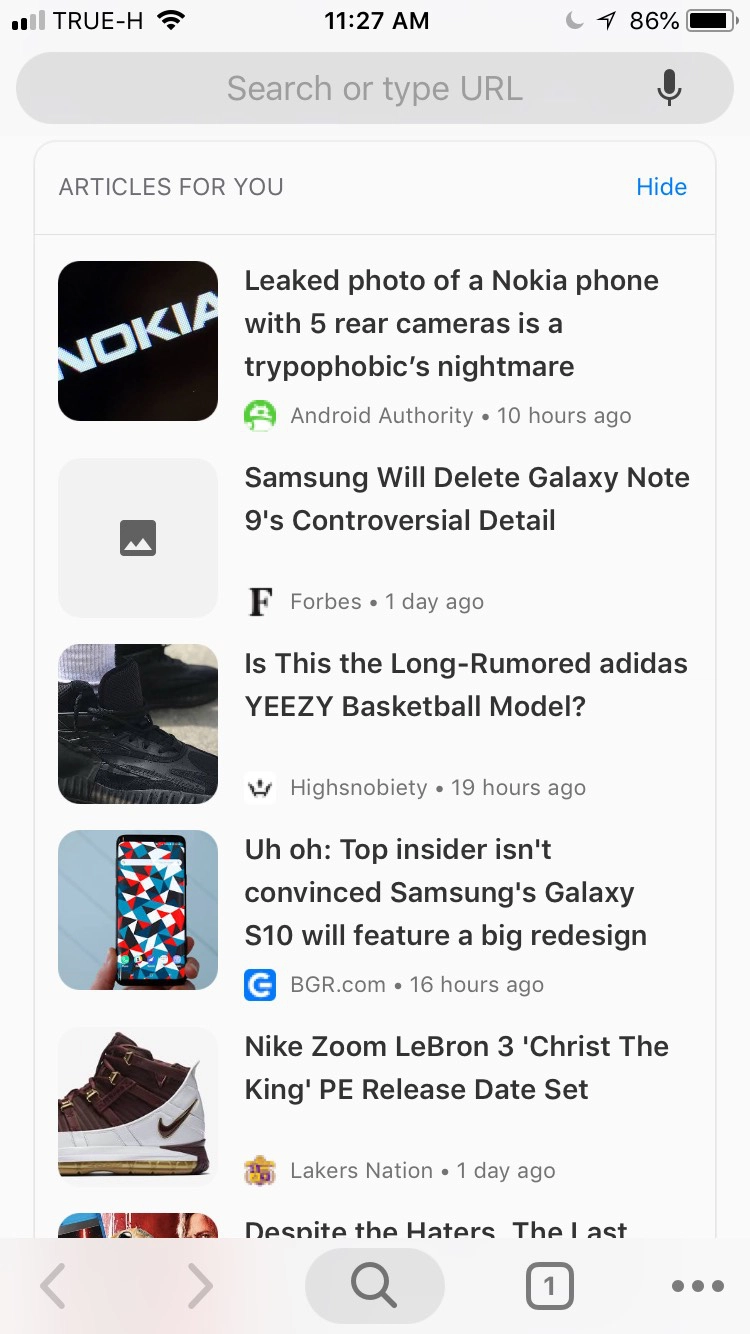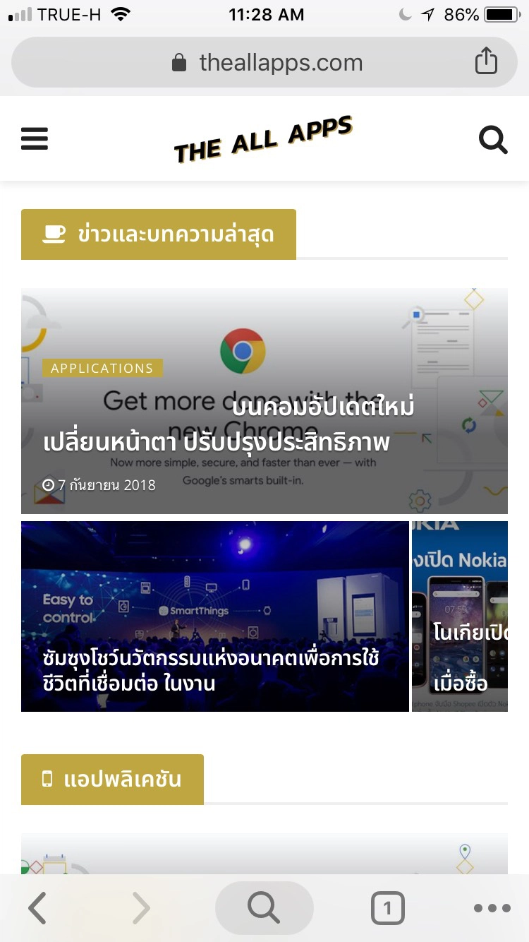 สำหรับฝั่ง iOS ดูเหมือนจะมีลูกเล่นมากกว่านิดหน่อย โดยมีแถบเมนูลุดมาให้ เลื่อนลงมาก็จะมีการแนะนำข่าวหรือเว็บไซต์เช่นกัน โดยจะมีปุ่มค้นหาในแถบด้านล่างมาให้ด้วย