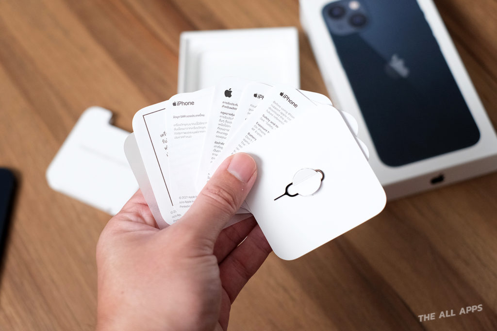 ภายในก็จะพบกับเอกสารต่างๆ ได้แก่ คู่มือแนะนำการใช้งานเบื้องต้น การรับประกัน และ เอกสารยืนยันว่าผ่านการรับรองจาก กสทช. และยังคงมีสติ๊กเกอร์ Apple สีขาวมาให้ 1 แผ่น พร้อมกับเข็มจิ้มถาดซิมการ์ด