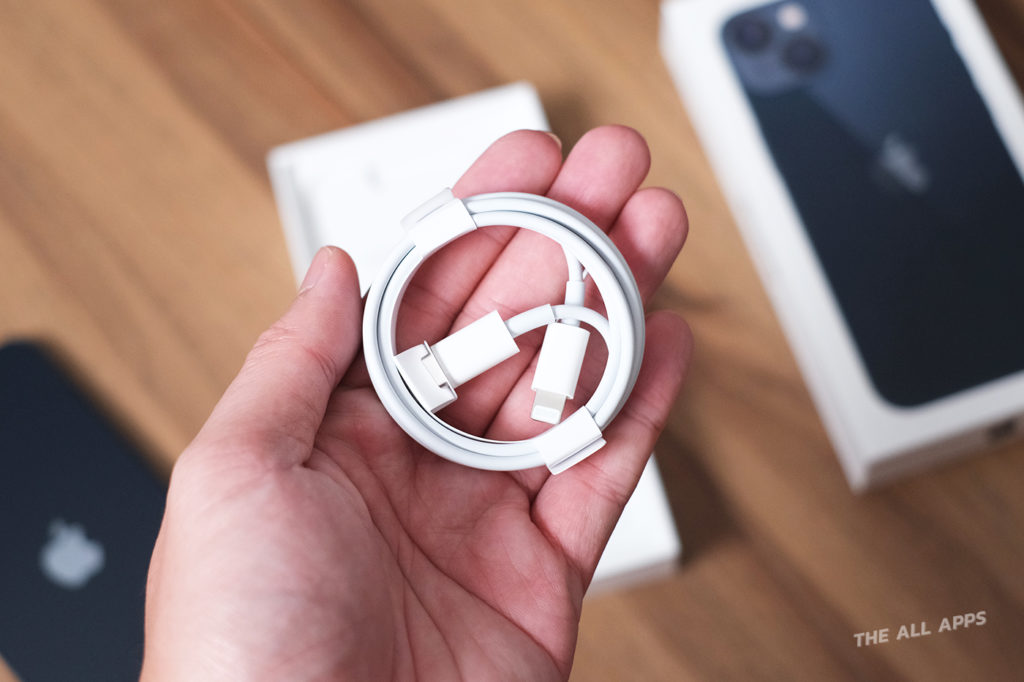 อย่างที่ทราบกันดีว่าจะไม่มีอุปกรณ์ชาร์จ หรือ Power Adapter แถมมาให้ ตามนโยบายลดโลกร้อนของ Apple ที่เริ่มมาตั้งแต่ไอโฟนรุ่นก่อนหน้า แต่ยังมีสายชาร์จ USB‑C to Lightning มาให้ใช้งาน
