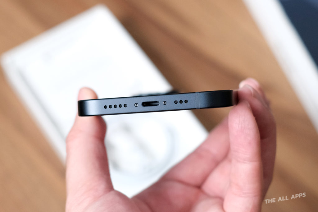 ด้านล่างจะมีไมโครโฟนที่ประกบด้านข้างพอร์ต Lightning และถัดไปจะเป็นลำโพงสเตอริโอ
