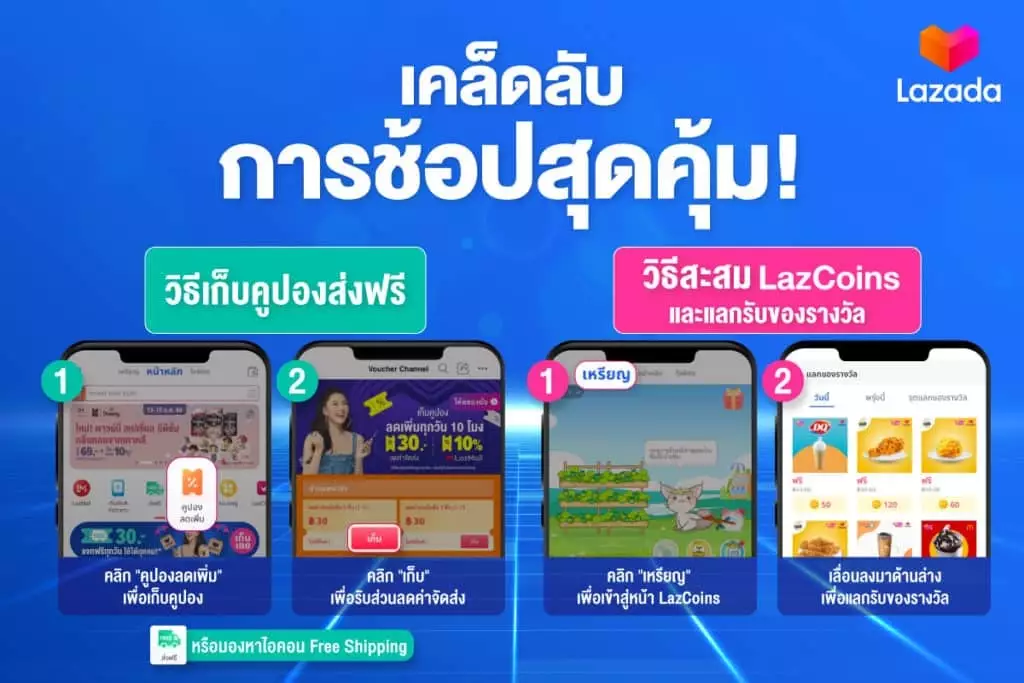 เทคนิคประหยัดค่าส่งสินค้าด้วยการ ‘เก็บคูปองส่งฟรี’ ช้อปทุกวันส่งฟรีทั่วไทยทุกวันที่ลาซาด้า รับคูปองส่วนลดค่าจัดส่ง 30 บาท เมื่อสั่งซื้อสินค้า 3 ชิ้นขึ้นไป หรือส่วนลดค่าส่ง 30 บาท เมื่อช้อปครบ 99 บาท เก็บได้ทุกวันตั้งแต่ 10 โมงเป็นต้นไป ลาซาด้าให้ทุกคนได้ช้อปคุ้ม ไร้กังวลเรื่องค่าจัดส่ง และอย่าลืม ‘สะสม LazCoins’ ทำกิจกรรมสะสมเหรียญประจำวัน เพื่อใช้เหรียญ LazCoins แลกสินค้าจากแบรนด์ดังมากมาย อาทิ บัตรกำนัลหรือคูปองส่วนลด McDonald’s, Dairy Queen, Swensens, Pizza Company และอื่นๆ อีกมากมาย ที่สามารถใช้แบบ Delivery หรือคูปองส่วนลดเพิ่มบนลาซาด้าเริ่มต้นเพียง 10 เหรียญเท่านั้น