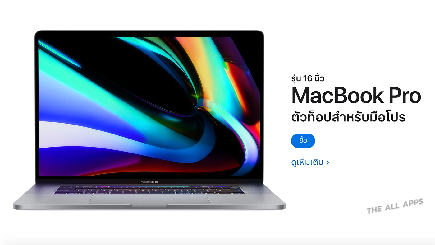 MacBook Pro รุ่น 16 นิ้ว เป็นแมคบุ๊ครุ่นใหม่ที่เปิดตัวออกมาช่วงกลางเดือนพฤศจิกายนที่ผ่านมา และตอนนี้ได้เปิดวางจำหน่ายในประเทศไทยแล้ว ผ่านช่องทาง apple.com มีราคาเริ่มต้นที่ 75,900 บาท และมีราคาสูงที่สุดที่ 239,300 บาท (รวมซอฟท์แวร์ Final Cut Pro X, Logic Pro X)