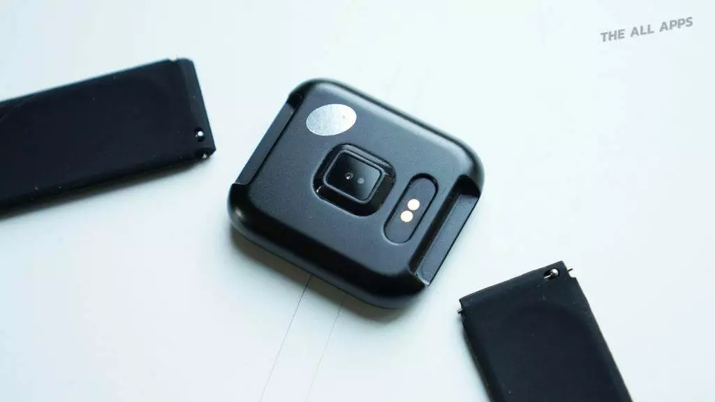 ด้านหลังมีเซ็นเซอร์วัดอัตราการเต้นของหัวใจวางอยู่ตรงกลางของตัวเรือน ซึ่งจะทำการวัดอัตราการเต้นของหัวใจตลอดทั้งวัน ด้านบนเป็นจุดทองเหลือง 2 จุด สำหรับชาร์จไฟ ซึ่งต้องใช้ที่ชาร์จที่มาในชุดจัดจำหน่ายเท่านั้น และตัวสายสามารถถอดเปลี่ยนได้ง่าย เพียงแค่ดึงสลักออกมาก็เปลี่ยนได้แล้ว