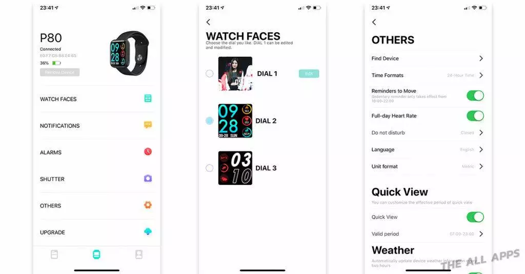 สำหรับหน้าที่ 2 จะเป็นการตั้งค่านาฬิกา เลือกรูปแบบหน้าจอ, การตั้งค่าการรับการแจ้งเตือนจากสมาร์ทโฟน, ตั้งปลุก, ใช้เป็นรีโมทชัตเตอร์สั่งให้สมาร์ทโฟนถ่ายรูป และการตั้งค่าต่างๆ ของนาฬิกา อาทิ รูปแบบเวลา, หน่วยนับ, การแจ้งเตือนให้ขยับเมื่อนั่งนานๆ ซึ่งฟีเจอร์นี้เหมาะมากสำหรับพนักงานที่นั่งโต๊ะนานๆ ไว้ช่วยแจ้งเตือนให้เราลุกยืนขยับตัว