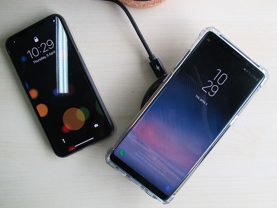 ความกว้างของแท่นชาร์จนั้นรองรับกับ iPhone 8, iPhone 8 Plus และ iPhone X ได้อย่างสบายๆ การวาง iPhone ชาร์จนั้นจะต้องวางลงไปให้ด้านหลังประกบกับแท่นชาร์จ หากมีการใช้เคสทีมีหนากว่า 3 มิลลิเมตร หรือตัวเคสเป็นเหล็ก อาจจะส่งผลทำให้ไม่สามารถชาร์จแบบไร้สายได้ เมื่อมีการชาร์จไฟ LED สีส้มก็จะแสดงขึ้นมา
