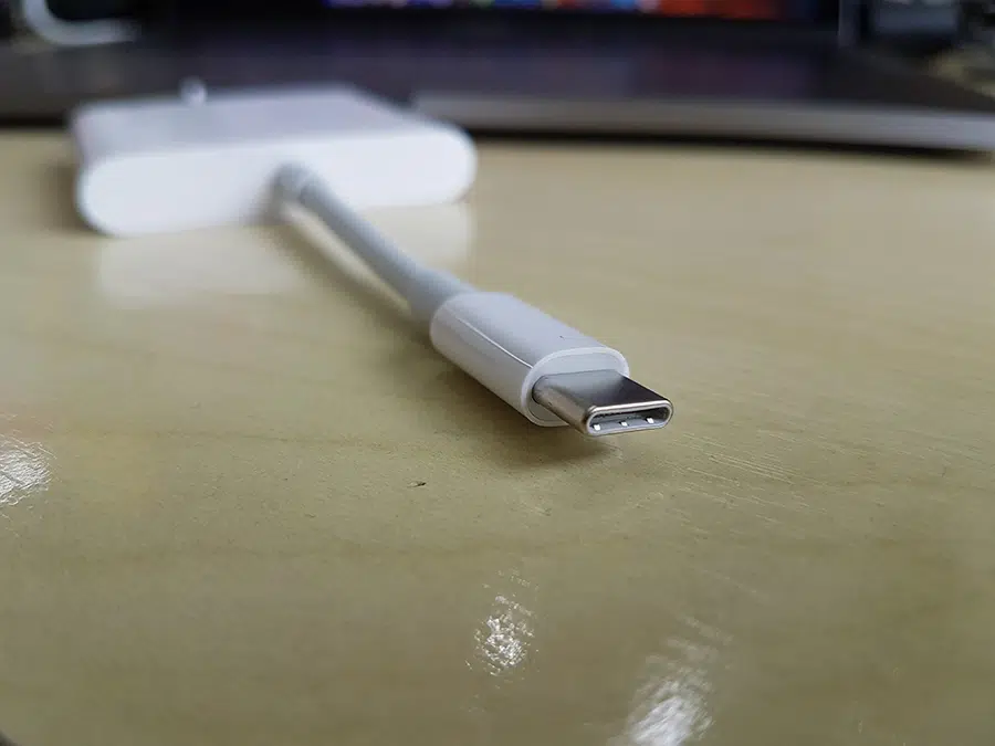ตัวอะแดปเตอร์มีน้ำหนักเบา พกพาง่าย สำหรับวัสดุภายนอก ยังคงเป็นพลาสติกสีขาวมันวาวเหมือนกับอุปกรณ์เสริมต่างๆ ของทาง Apple
