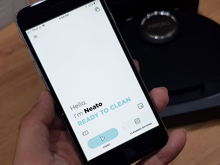 ก่อนการใช้งานอย่าลืมทำการชาร์จแบตเตอรี่ให้เต็มเสียก่อน โดยหันฝั่งที่มีแถบสีเงินมาชนกับแท่นชาร์จ จากนั้นให้ทำการดาวน์โหลดติดตั้งแอปพลิเคชัน Neato Robotics พร้อมทำการสมัครบัญชีให้เรียบร้อย ซึ่งแอปพลิเคชันนี้ก็รองรับทั้ง Android และ iOS และการเชื่อมต่อผ่าน Wi-Fi จะเป็นแบบ 2.4GHz เท่านั้น นอกจากนี้หุ่นยนต์ดูดฝุ่น D5 Connected ยังสามารถเชื่อมต่อและควบคุมผ่าน Amazon Alexa, Google Home, Neato Chatbot for Facebook และ IFTTT ได้อีกด้วย