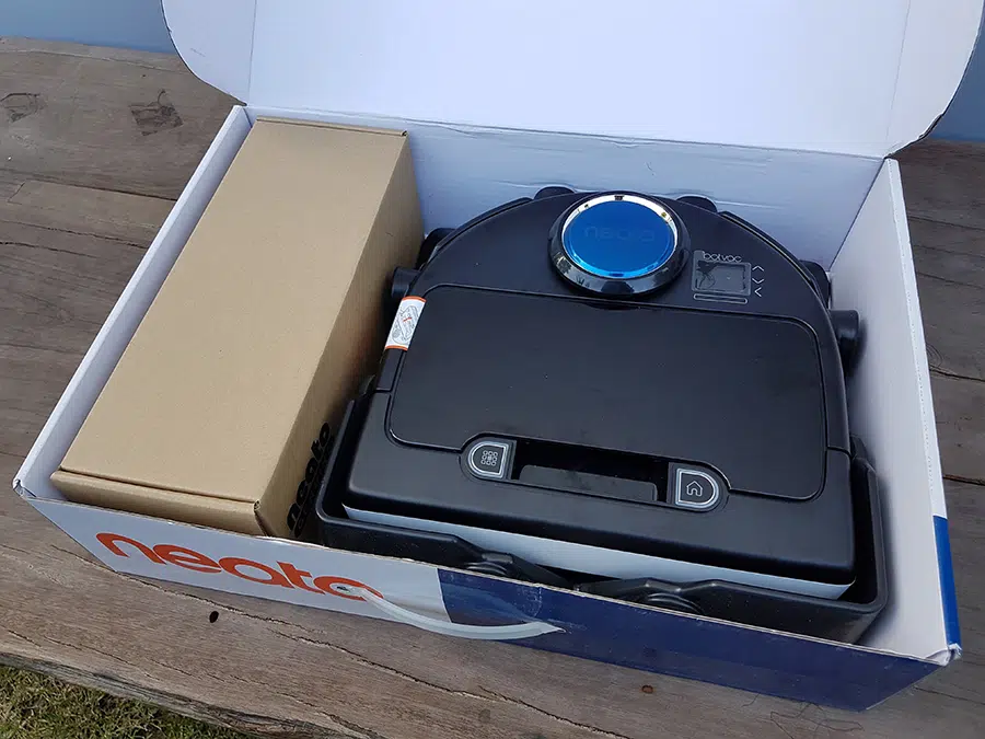 ก่อนอื่นเลย เรามาอุปกรณ์ในชุดจัดจำหน่ายว่ามีอะไรกันบ้าง สำหรับ Neato BOTVAC D85 นั้นจะมี ชุดแปรงทำความสะอาดพื้น, แผ่นกรองฝุ่นเป็นอะไหล่สำรองมาให้เปลี่ยน, แถบแม่เหล็กขนาดความยาว 4 เมตร ใช้สำหรับการกั้นแบ่งเขตเพื่อไม่ให้หุ่นยนต์ดูดฝุ่นเข้าไปทำความสะอาด หวี Neato สำหรับทำความสะอาดตัวหุ่นยนต์เครื่องดูดฝุ่น กรณีที่มีเส้นผมติดตัวแปรงทำความสะอาดต่างๆ และมีแท่นชาร์จไฟสำหรับหรุ่นยนต์ดูดฝุ่นรุ่นนี้
