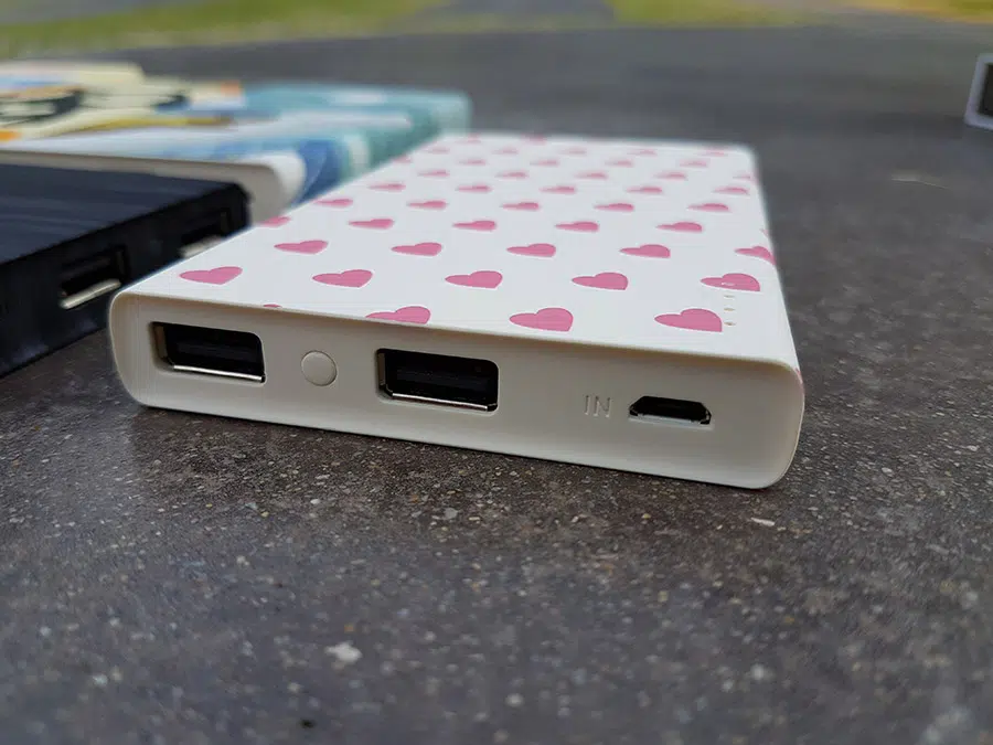 ขนาดของแบตสำรองนั้นไม่เล็กไม่ใหญ่จนเกินไป หนา 1.4 เซ็นติเมตร มีความยาว 12.3 เซ็นติเมตร และกว้าง 7.5 เซ็นติเมตร น้ำหนักเพียง 200 กรัม สามารถพกพาไปไหนมาได้ได้สะดวก อีกทั้งยังมีรูปทรงที่ทันสมัย และเนื้อวัสดุที่จับแล้วรู้สึกดี ไม่เป็นเนื้อพลาสติกแข็ง