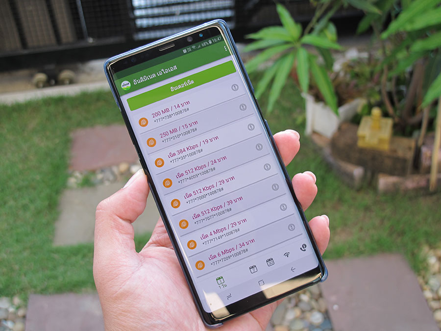 หลังจากที่ดาวน์โหลดติดตั้งมาเรียบร้อยแล้ว ก็ถึงเวลาเปิดใช้งาน เมื่อเปิดมาหน้าแรก เราจะเห็นโปรเน็ต แพ็กเกจเสริมต่างๆ ของเครือข่ายที่เราใช้งาน ด้านล่างจะเป็นแพ็กเกจ 1 วัน, 7 วัน, 30 วัน และโปรเน็ตเสริมให้เลือกดู