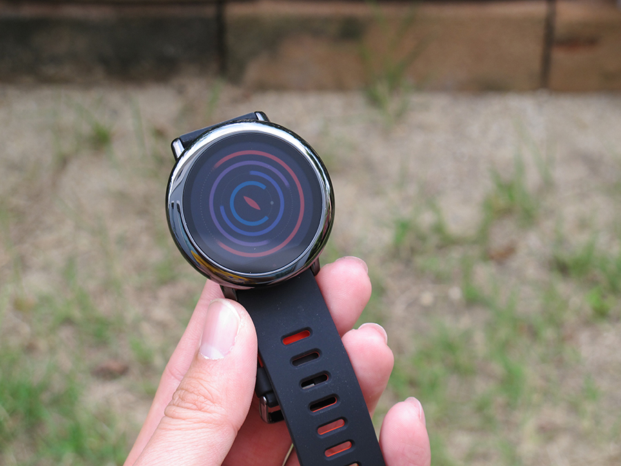 ตอนเปิดเครื่องด้วยการกดปุ่ม หลังจากที่ขึ้นโลโก้ AMAZFIT ไปสักครู่ แล้วก็ขึ้นแถบเส้นหลากสีขึ้นในเพื่อทำการ Loading เตรียมความพร้อมสำหรับใช้งานต่างๆ ซึ่งดูแล้วก็มีความสวยงาม น่าใช้งานขึ้นไปอีก