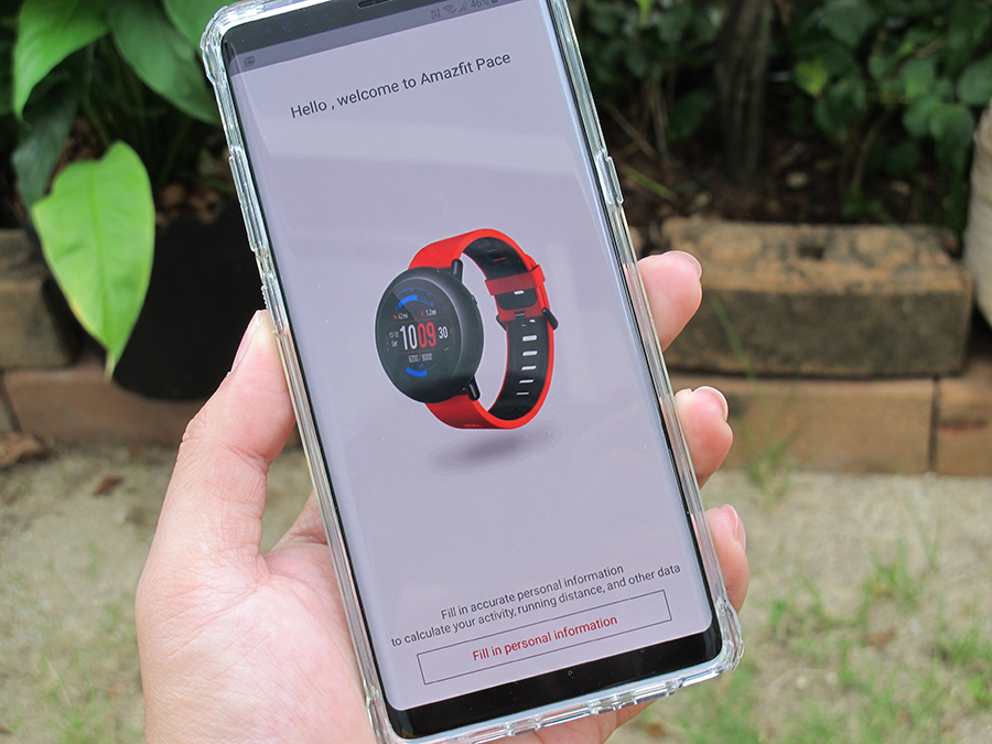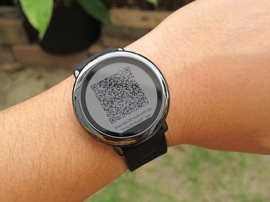 เมื่อเปิดเครื่องและเตรียความพร้อมเรียบร้อย นาฬิกาจะแสดง QR Code เพื่อให้เราทำการสแกนด้วยแอปพลิเคชัน Amazfit Watch เพื่อเริ่มทำการเชื่อมต่อเข้ากับสมาร์ทโฟน ดังนั้นสมาร์ทโฟนของเราควรที่จะติดตั้งแอปพลิเคชนี้เสียก่อน ซึ่งสามารถดาวน์โหลดได้จาก App Store สำหรับ iOS และ Google Play Store สำหรับ Android หลังจากนั้นก็เข้าไปเลือกรุ่นและทำการสแกนได้เลย