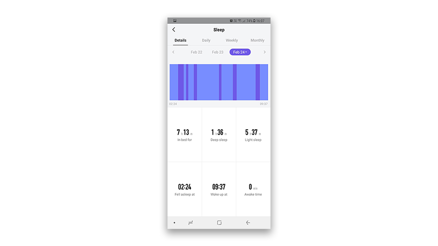โดยภายในข้อมูลจะบอกเวลาที่เราเข้านอนทั้งหมด, ระยะเวลาการหลับลึก, ระยะเวลาการหลับ, ระยะเวลาที่คล้ายการนอนหลับ, ระยะเวลาที่ตื่นมากลางดึก และเวลาที่ตื่นนอน