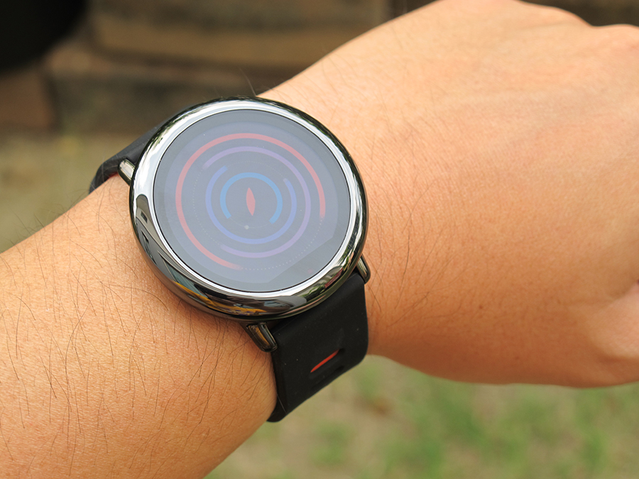 ตอนเปิดเครื่องด้วยการกดปุ่ม หลังจากที่ขึ้นโลโก้ AMAZFIT ไปสักครู่ แล้วก็ขึ้นแถบเส้นหลากสีขึ้นในเพื่อทำการ Loading เตรียมความพร้อมสำหรับใช้งานต่างๆ ซึ่งดูแล้วก็มีความสวยงาม น่าใช้งานขึ้นไปอีก