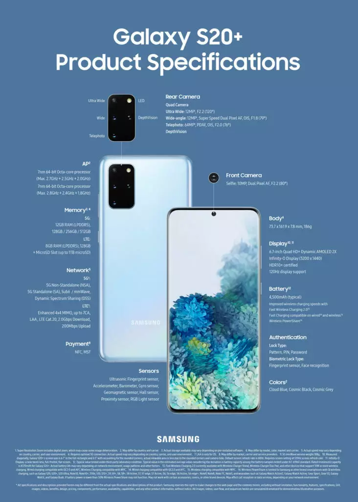 แต่ละรุ่นถูกออกแบบมาเพื่อการใช้งานที่แตกต่างกัน โดย Galaxy S20 Ultra นั้นจะเป็นรุ่นที่มีหน้าจอใหญ่ที่สุด และเน้นการถ่ายภาพ ถ่ายวิดีโอมากที่สุด ซึ่งใครที่ต้องการความละเอียดเยอะๆ และความสามารถในการซูม ก็คงต้องเลือกรุ่นนี้ต่อให้ไม่ชอบหน้าจอใหญ่ๆ ก็ตาม ส่วนใครที่ไม่ต้องการสเปกกล้องขนาดนั้น ก็เหลือตัวเลือกแค่ Galaxy S20+ และ Galaxy S20 ที่แตกต่างกันในเรื่องของขนาดตัวเครื่อง ขนาดหน้าจอ แต่ Galaxy S20 จะไม่มีเลนส์ DepthVision ที่จะมาช่วยในเรื่องของการถ่ายถาพหน้าชัดหลังละลาย ใครที่ไม่ซีเรียสเรื่องนี้และชอบหน้าจอเล็กๆ ก็ต้อง Galaxy S20 เลย