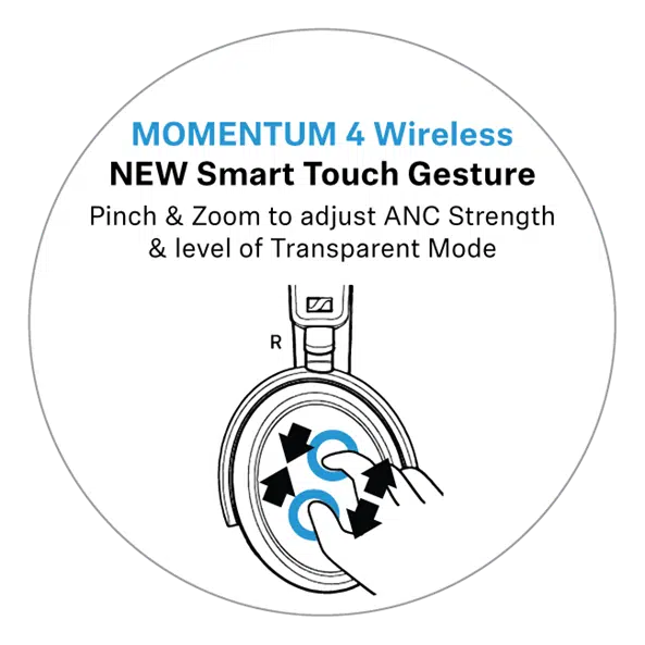สัมผัสการฟังที่ไม่เหมือนใครด้วยแอปพลิเคชัน Sennheiser Smart Control ที่สามารถปรับแต่งความถี่ของเสียง เลือกโหมดเสียง และมีฟีเจอร์ Sound Personalisation ที่ช่วยให้คุณสามารถปรับแต่งเสียงตามสไตล์ที่คุณชอบ นอกจากนี้ หูฟังไร้สาย MOMENTUM 4 ยังมาพร้อมฟีเจอร์ Smart Touch Gestures หรือการสั่งงานอัจฉริยะด้วยระบบสัมผัสซึ่งช่วยให้คุณควบคุมและเปลี่ยนโหมดระหว่างโหมด Adaptive Noise Cancellation ซึ่งจะช่วยตัดเสียงรบกวนภายนอกโดยอัตโนมัติ และโหมด Transparency ที่จะช่วยให้คุณได้ยินเสียงจากภายนอกได้โดยไม่ต้องถอดหูฟังออกได้อย่างง่ายดาย