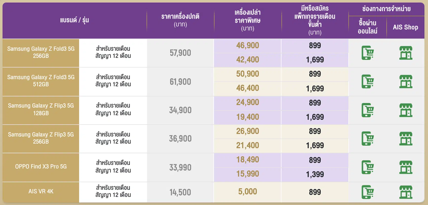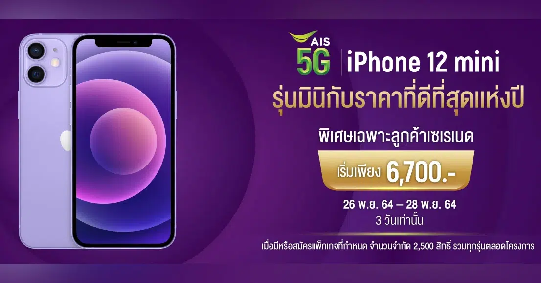 รับสิทธิพิเศษ 26 พ.ย. 64 – 28 พ.ย. 64 (3 วันเท่านั้น) ที่ AIS Shop, Serenade Club และ AIS Online Store พร้อมจัดส่งฟรี หรือเลือกรับตามวันที่สะดวก* รายละเอียดเพิ่มเติมดูได้ที่ AIS
