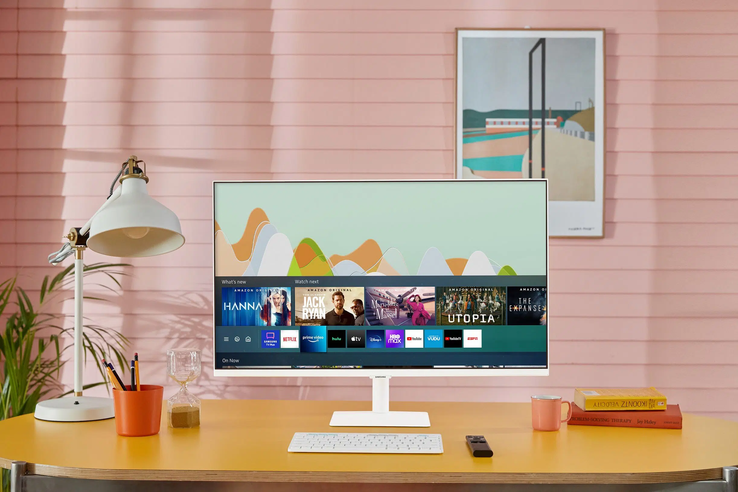 Smart Monitor M5 สีขาว (27 นิ้ว) ถือเป็นอีกหนึ่งตัวเลือกสำหรับใครที่กำลังมองหาจอมอนิเตอร์สไตล์มินิมอลเพื่อเติมเต็มเวิร์คสเตชันอย่างลงตัว โดดเด่นทั้งดีไซน์และฟังก์ชันด้วยนวัตกรรมจอภาพที่เหนือชั้น ตอบโจทย์คนรุ่นใหม่ด้วยประสิทธิภาพอันรอบด้าน เพราะนอกจากจะเป็นหน้าจอเครื่องแรกของโลกที่รองรับการใช้งาน AirPlay2 และมาพร้อมฟีเจอร์ Samsung DeX, Microsoft Office 365 และ Remote Access สำหรับการทำงานและเรียนออนไลน์แล้ว สมาร์ทมอนิเตอร์เครื่องนี้ยังเป็นสมาร์ททีวีที่รวมแอปพลิเคชันความบันเทิงแบบไร้ขีดจำกัดไว้ในเครื่องเดียว